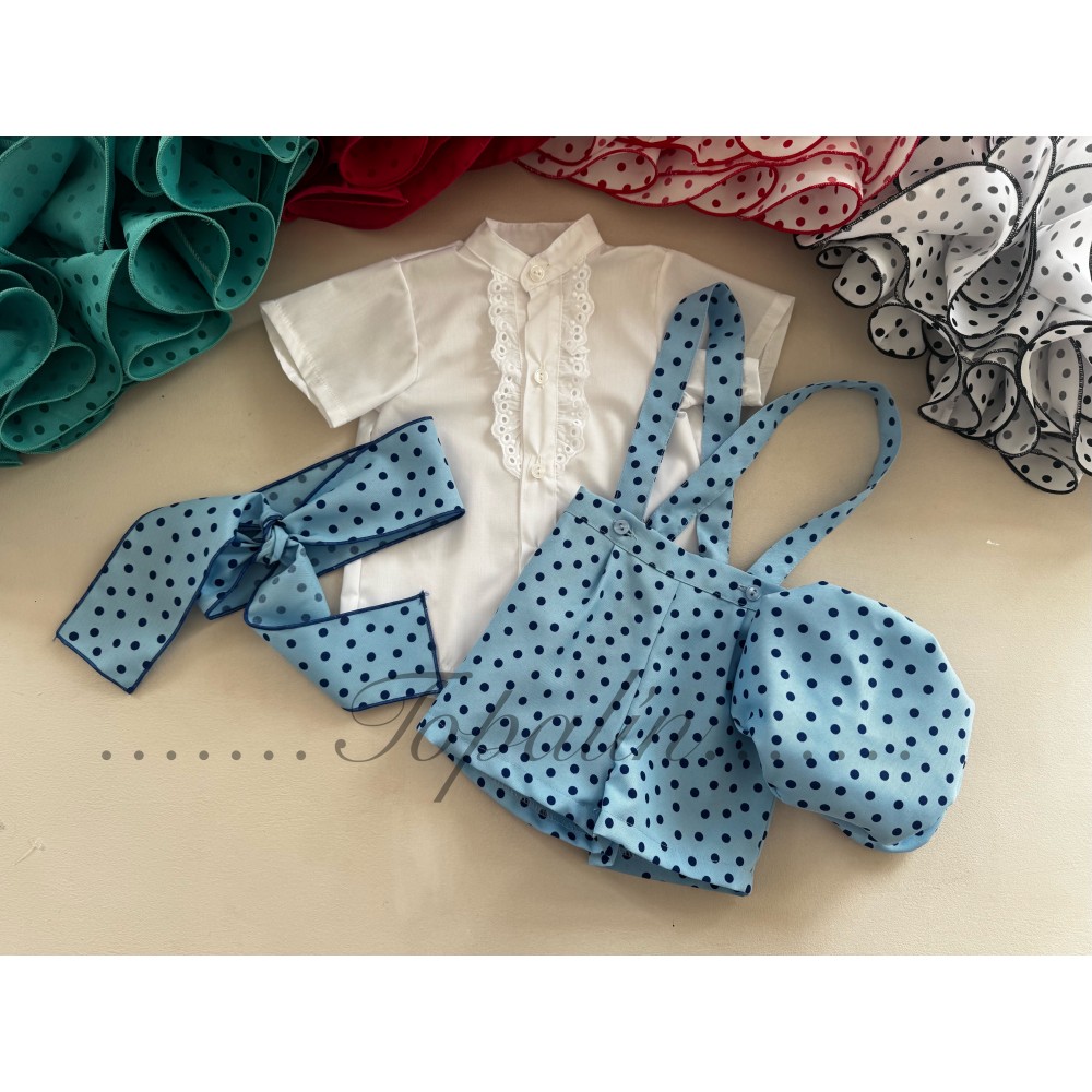 De 0(9/12m) a 4 años conjunto flamenco Candil con boina y fajín azul