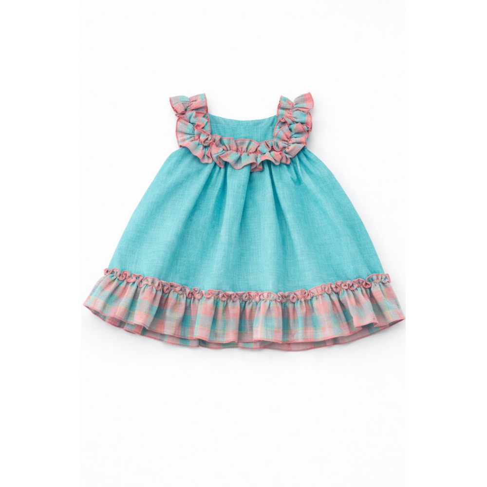de 3 a 8años vestido esmeralda y cuadros Nancy