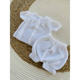Conjunto para bebé formado por una sudadera con coderas y unos pantalones con cintura ajustable. Este modelo se caracteriza por tener un interior afelpado.